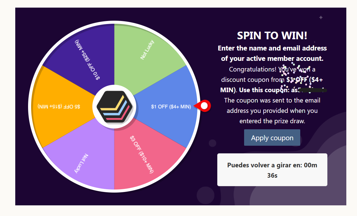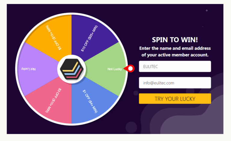 Spin to Win: Give the wheel a spin for a chance to win a fixed discount ranging from $1 to $10 applied directly to your shopping cart.