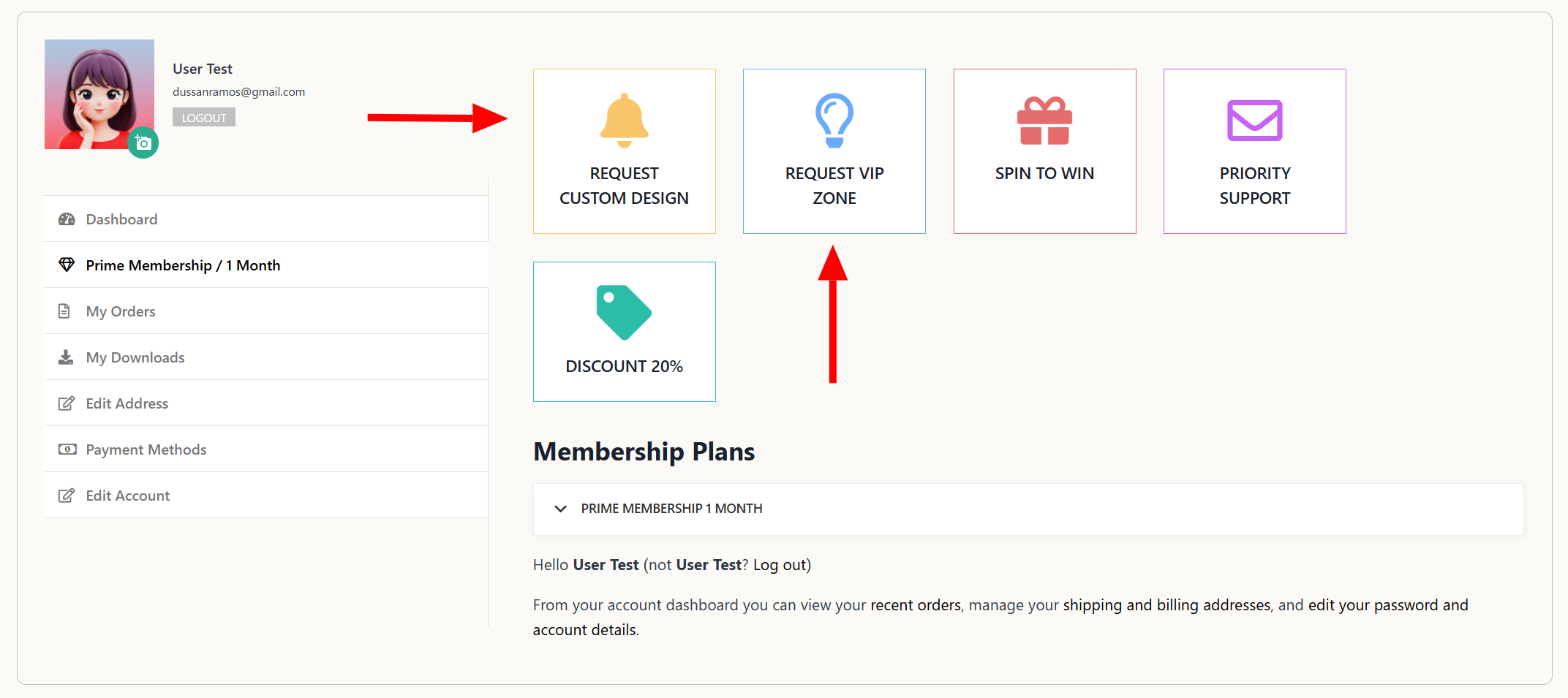 “Request VIP Zone” Option: Use the dedicated button in your PRIME MEMBERSHIP profile area.