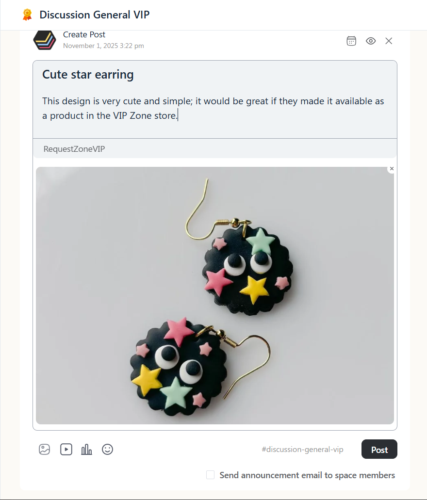 Private Community (Recommended): The easiest and most interactive way is through our private member group. Post your design inspiration in the “General VIP Discussion” area of the community to share ideas with fellow members and our design team!