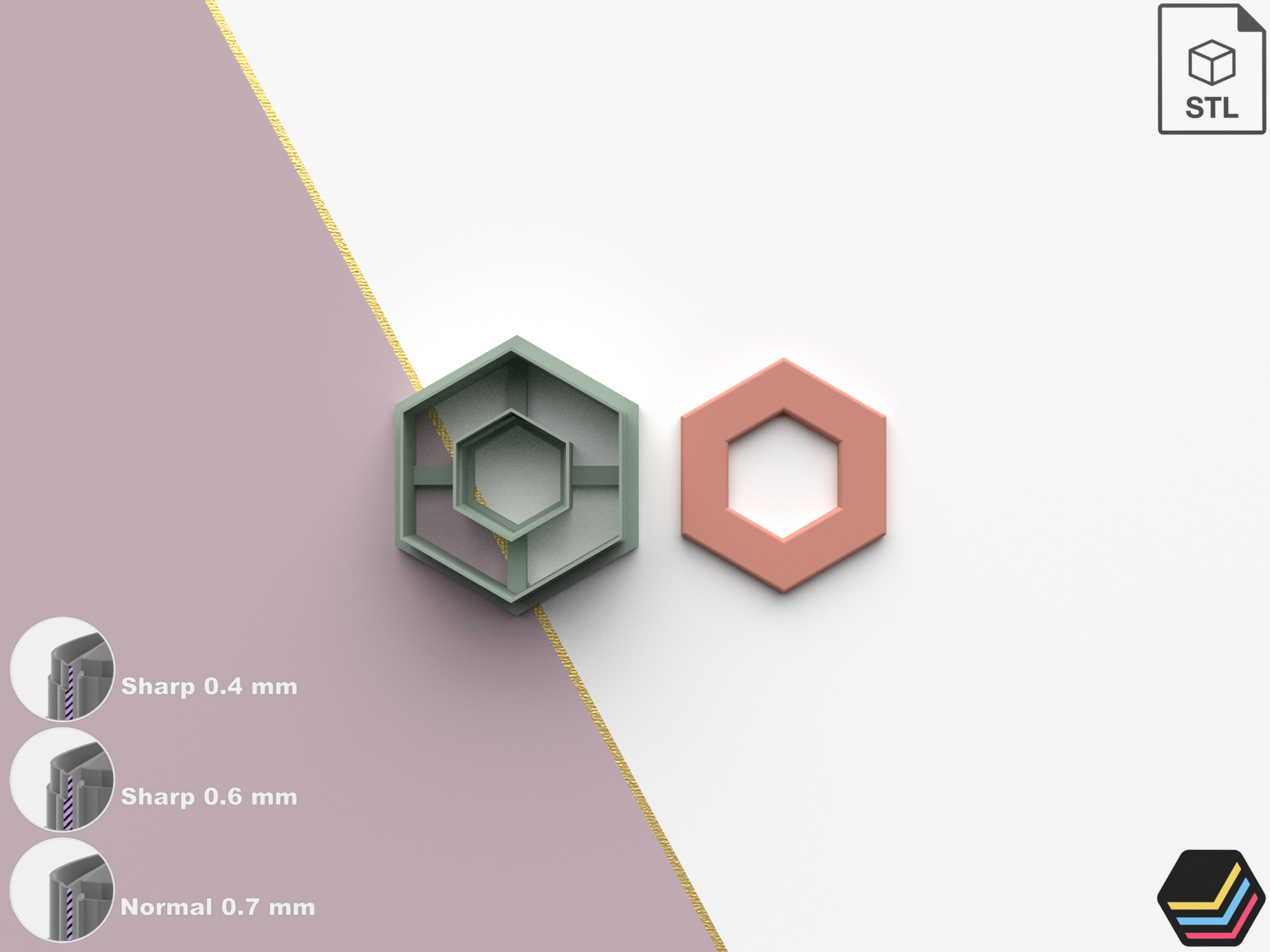 Polymer Clay Cutters HeX 001 | 9 Size 3 Cutter Versions | Digital Files for 3D Printing