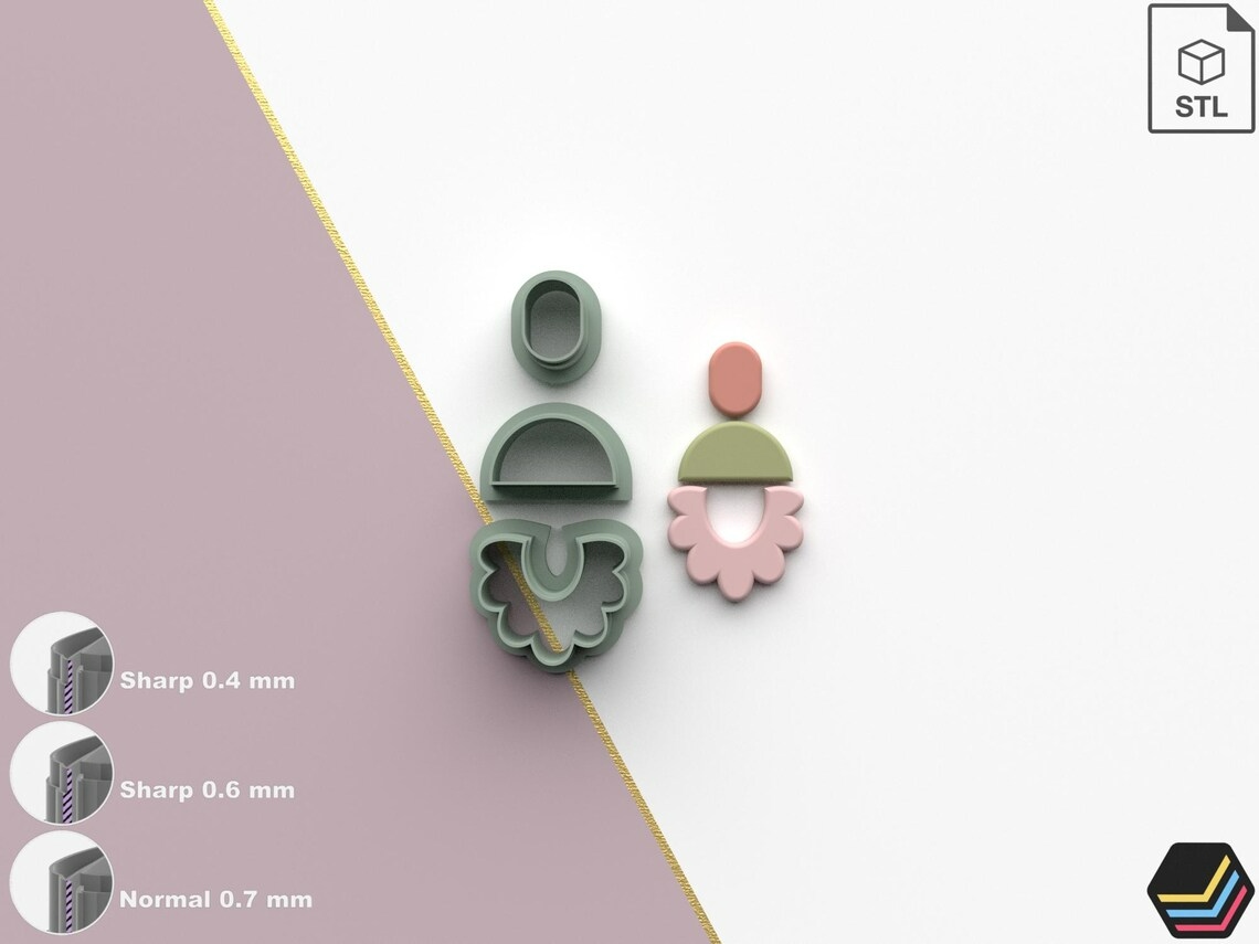 Polymer Clay Cutters Flower Geometric | 5 Size 3 Cutter Versions | Digital Files for 3D Printing