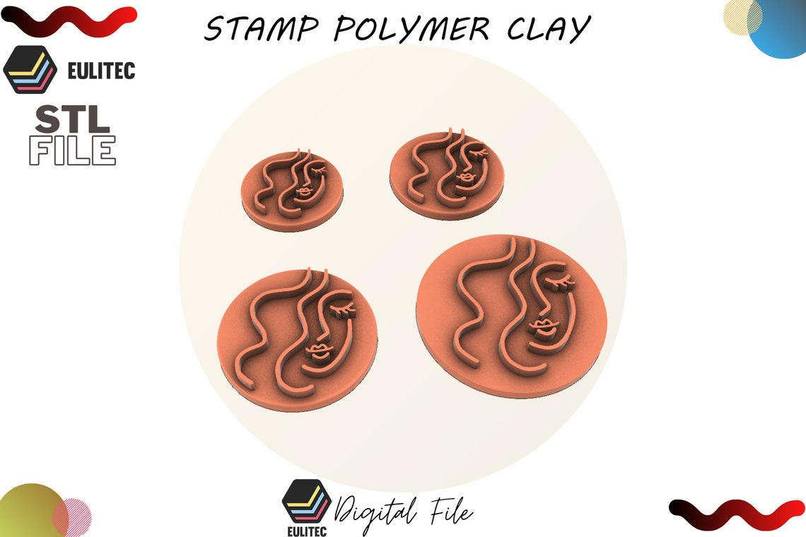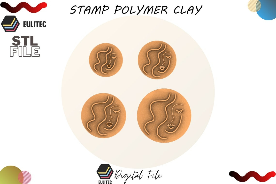 Woman Face Polymer Clay Stamp / Digital STL File / 4 Sizes